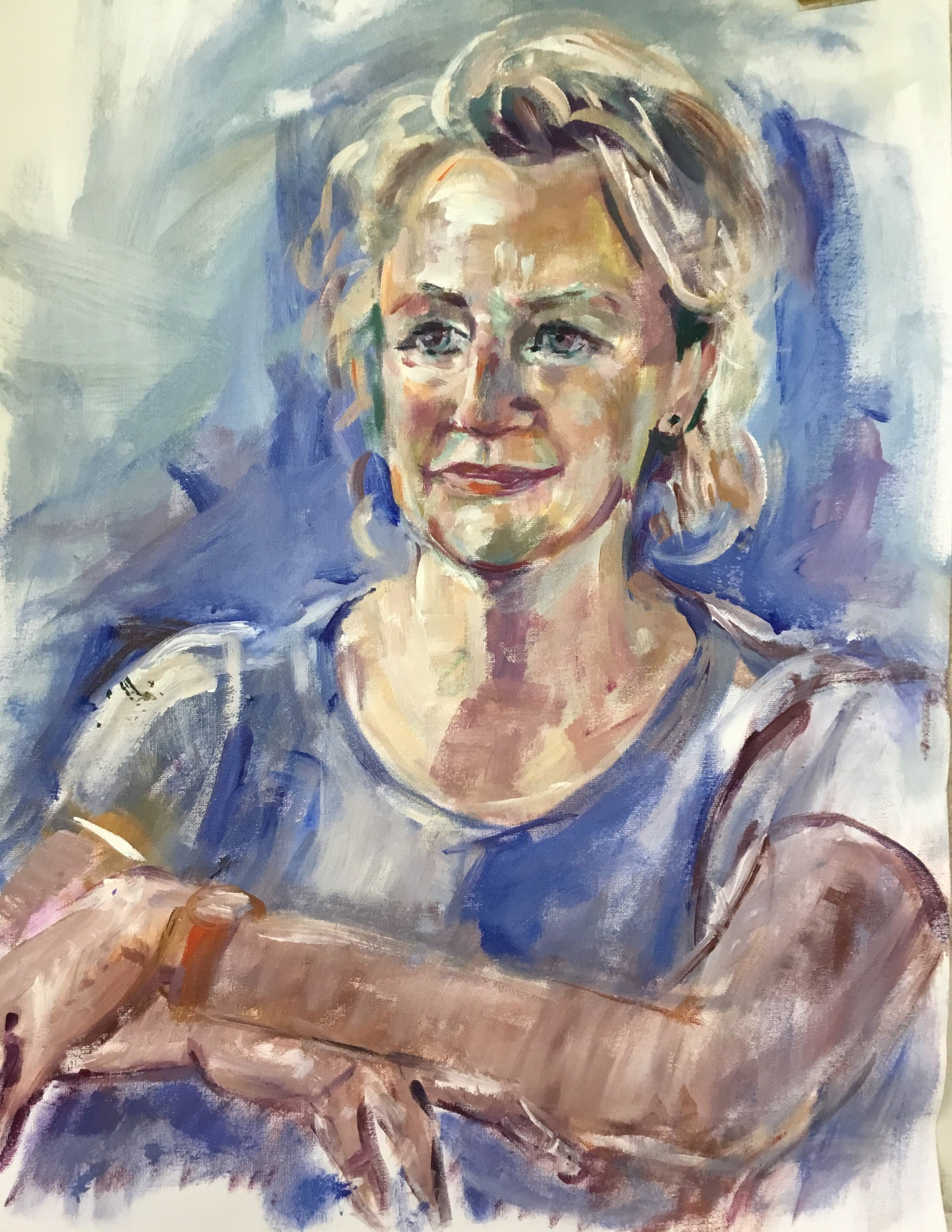 Om de feeling met het portretteren op peil te houden schilder ik veel autonome portretten waarbij ik vrij kan experimenteren.